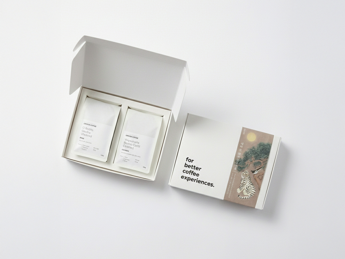 원두 2개를 선택하여 본 서비스와 함께 장바구니에 담아 결제하시면 선물 케이스에 담아 쇼핑백과 함께 보내드립니다.
