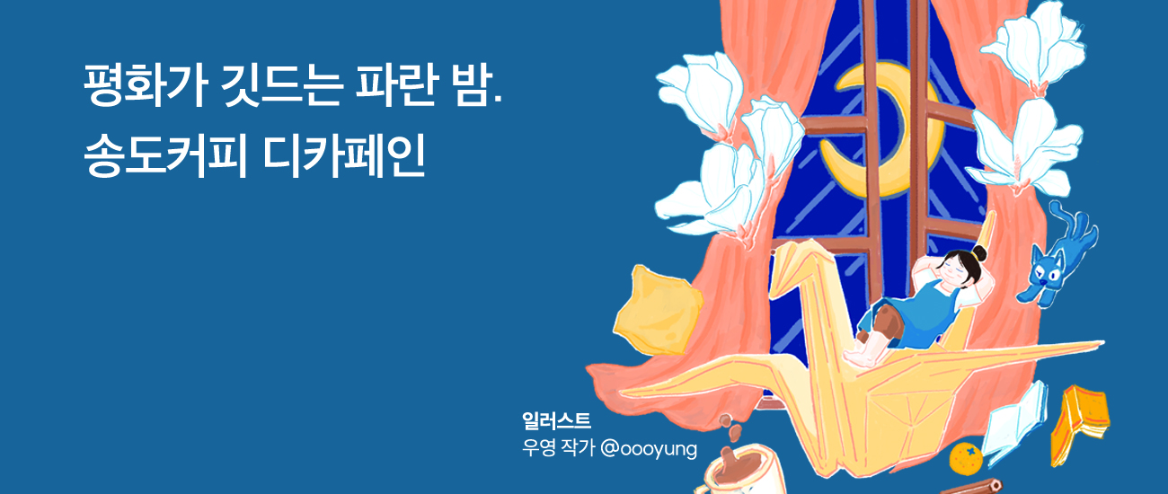 일반적인 커피 로스팅보다 디카페인 커피 로스팅은 더 까다롭습니다. 하지만 괜찮습니다. 송도커피가 더 섬세하게 로스팅하면 됩니다. 송도커피가 더 예민하게 굴수록 여러분의 밤에 달고 향기로운 평화가 찾아듭니다.